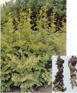 概述:本品为毛茛科植物大三叶升麻 Cimicifuga heracleifolia Kom. 、兴安升麻Cimicifuga dahurica (Turcz.) Maxim . 或升麻 Cimicifuga foetida L. 的干燥根茎。秋季采挖,除去泥沙,晒至须根干时,燎去或除去须根,晒干。